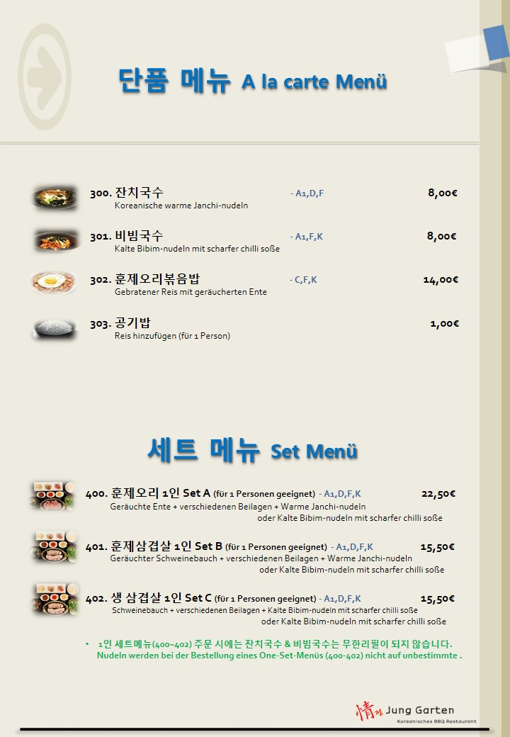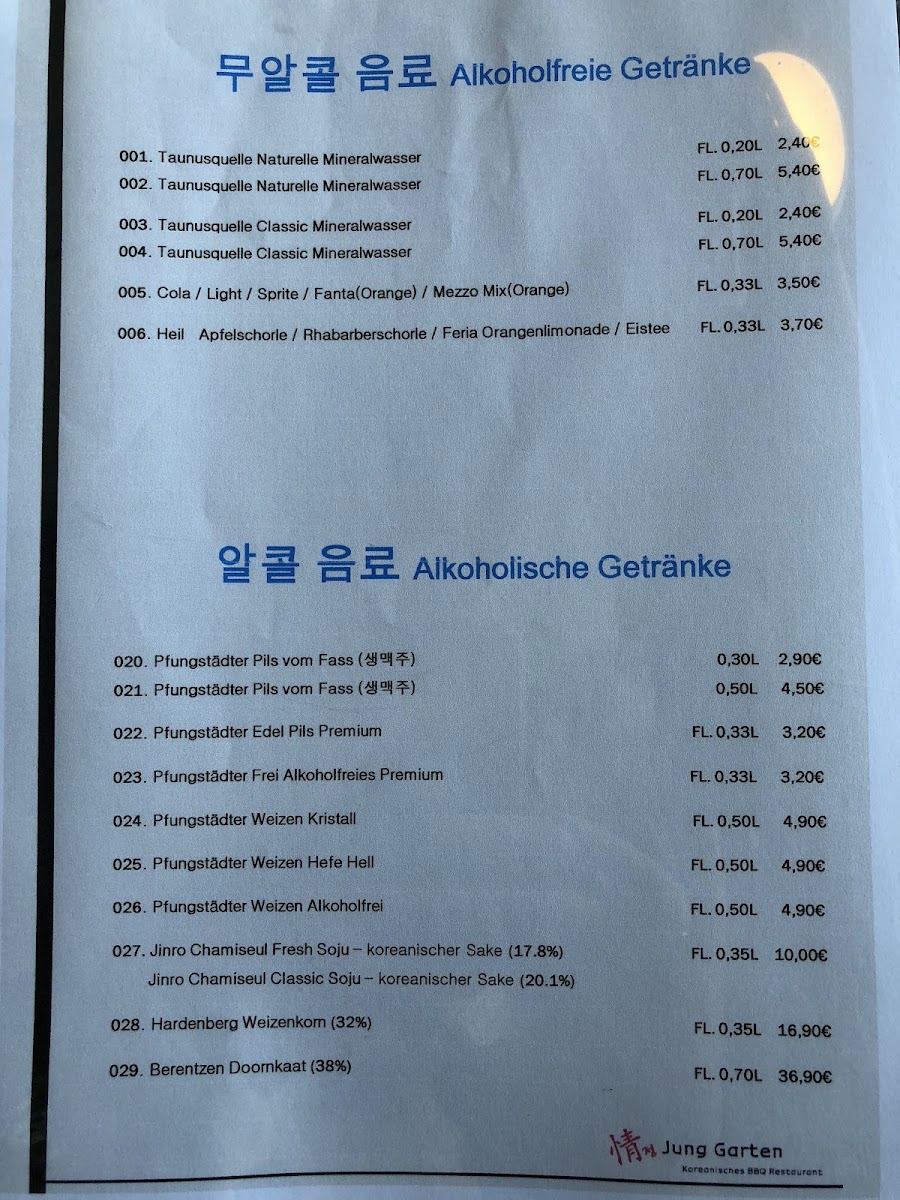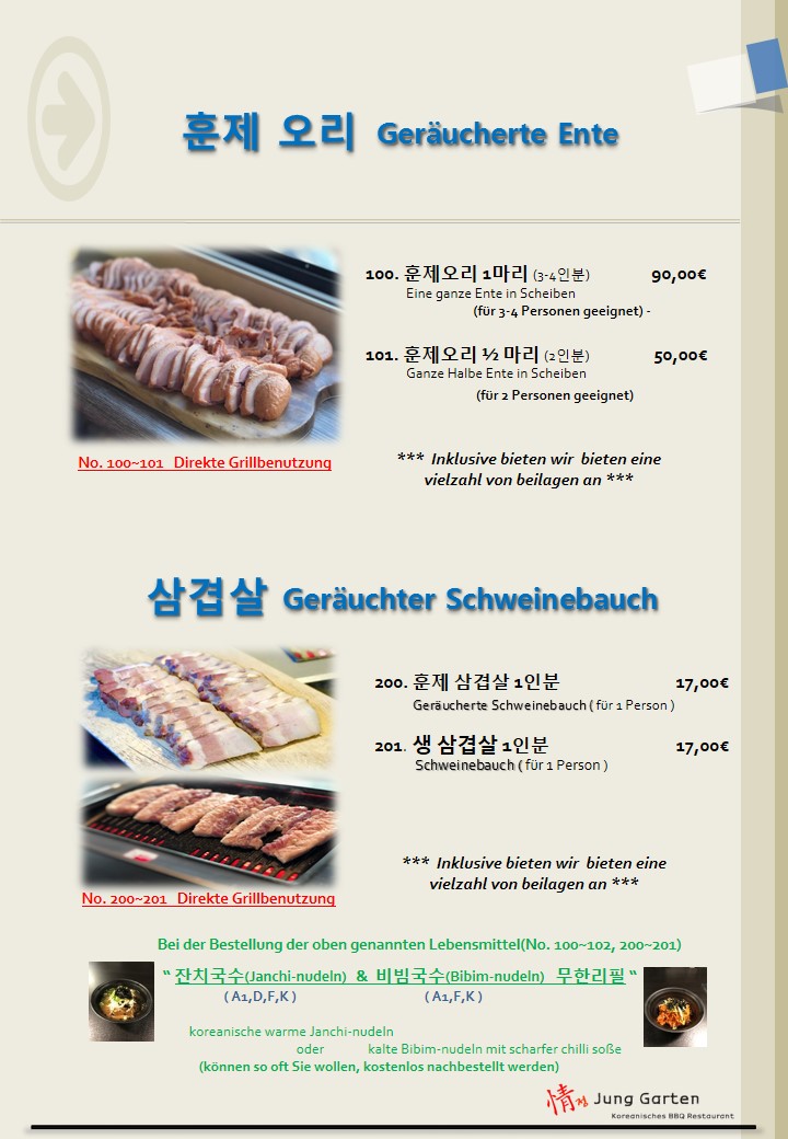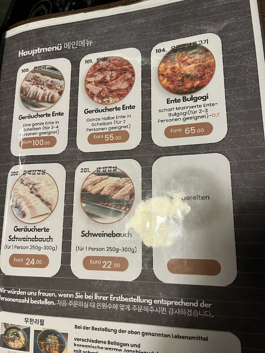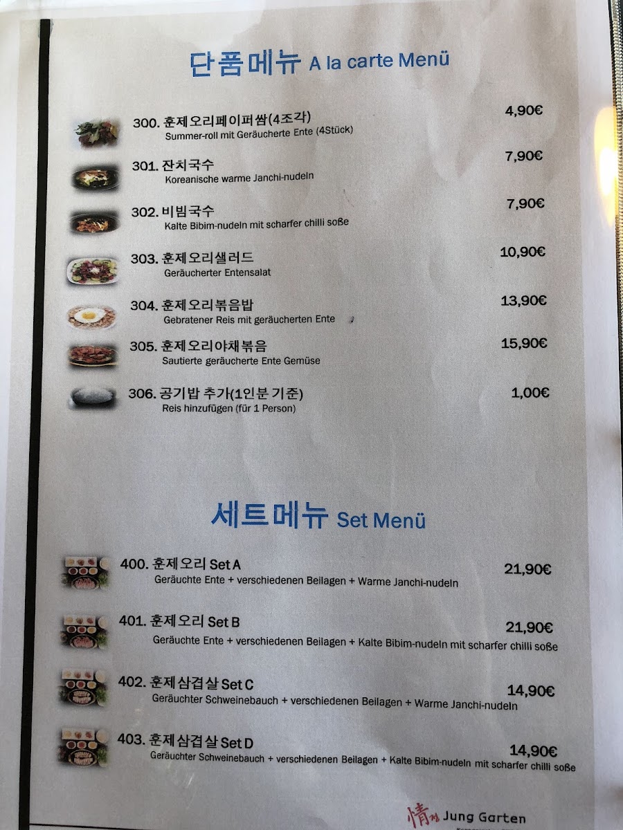 Welcome to Jung Garten Koreanisches BBQ, a hidden gem located in Kriftel that delights with its authentic Korean dining experience. Nestled on Frankfurter Str., this restaurant brings the warmth of Korean hospitality to every table. The main attractions on the menu are the exquisite cuts of pork and smoked duck, both cooked right at your table for an interactive feast. Customers rave about the tender and flavorful duck, ideal for sharing with friends or family.